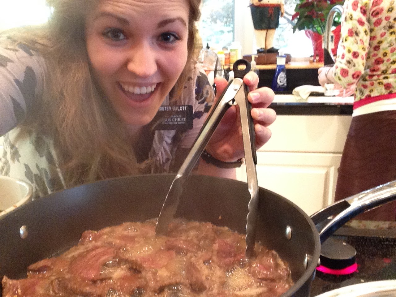 For dinner on Saturday, the STL and I went to a family who weren't quite ready for us yet, and asked us to help out. The Sister asked the STL to set the table, and then she turned to me and asked me to cook the meat. ...Cook? Meat? How? Like, in the microwave or...? Anyway, I DID IT!